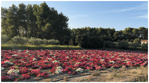 Champ de pétunias « comme autrefois » devant le moulin du Calanquet