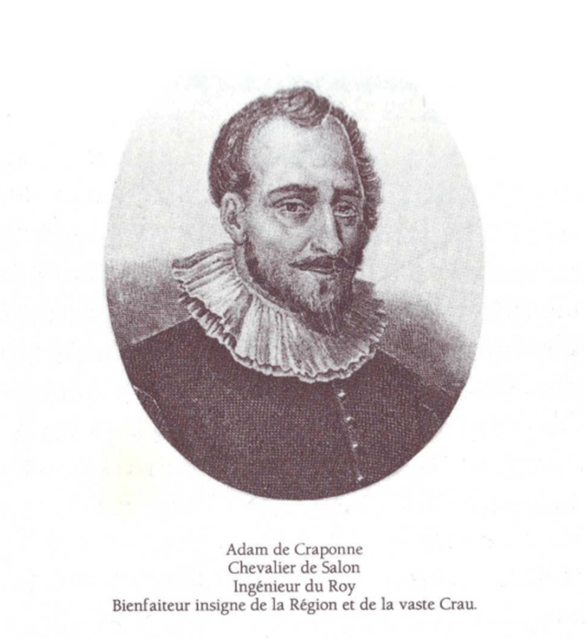 En 1554, Adam de Craponne, un des grands ingénieurs de son époque, obtient à 28 ans, l’autorisation de dériver l’eau de la Durance, pour construire un canal depuis la Roque-d’Anthéron jusqu’à Salon. Ce canal fait tourner les moulins à huile et farine, mais permet également d’irriguer les cultures. Ce canal existe toujours, une branche de 60km va jusqu’à Arles, une autre à l’Etang de Berre. L’eau de la Durance devient ainsi source de prospérité pour la Provence.